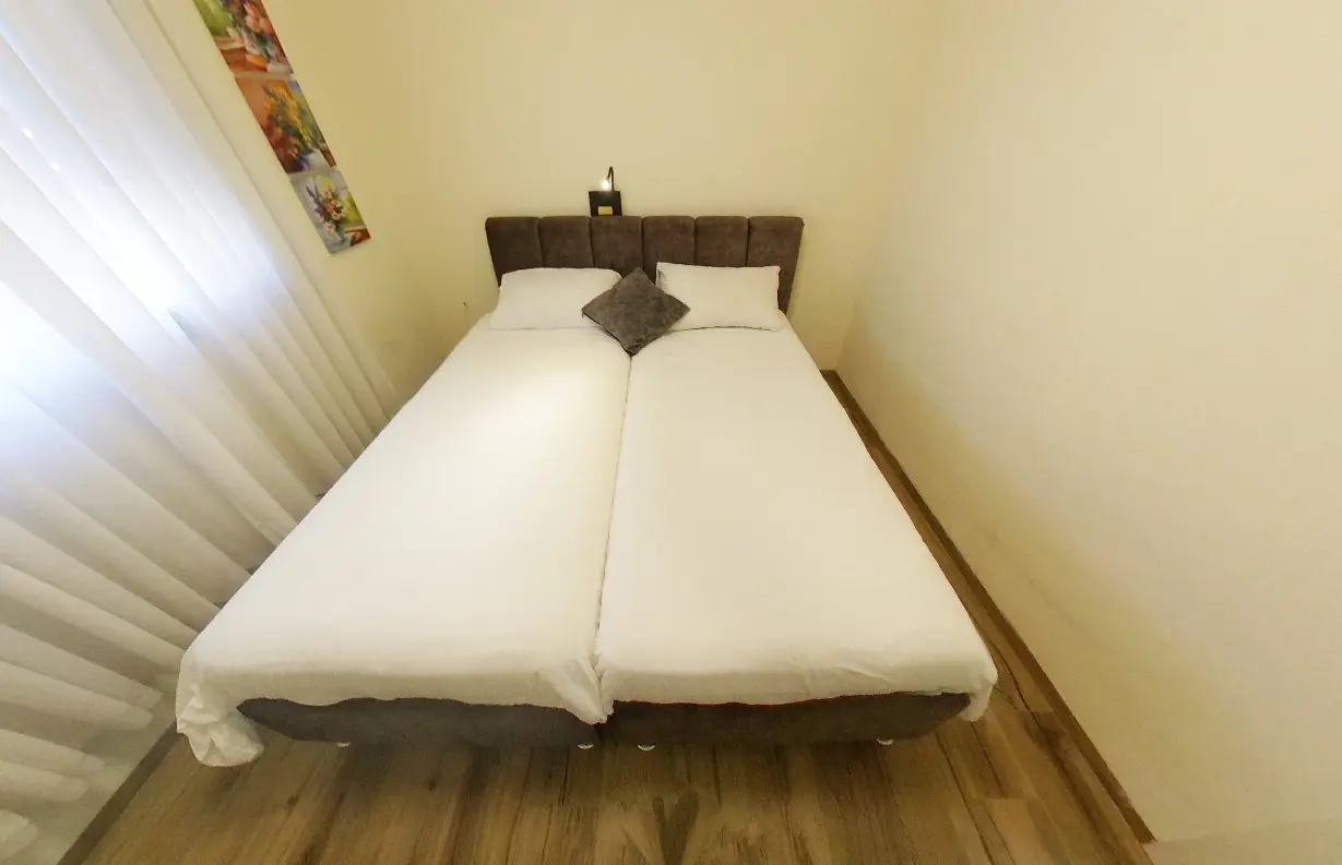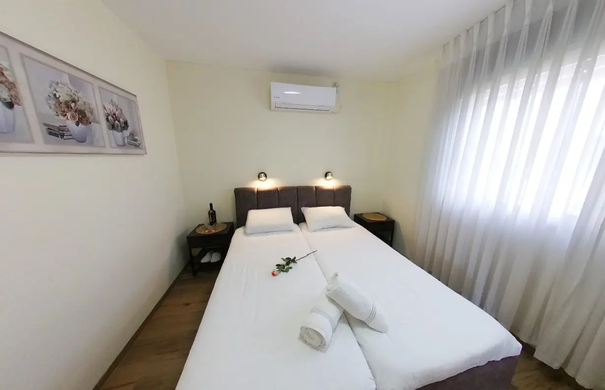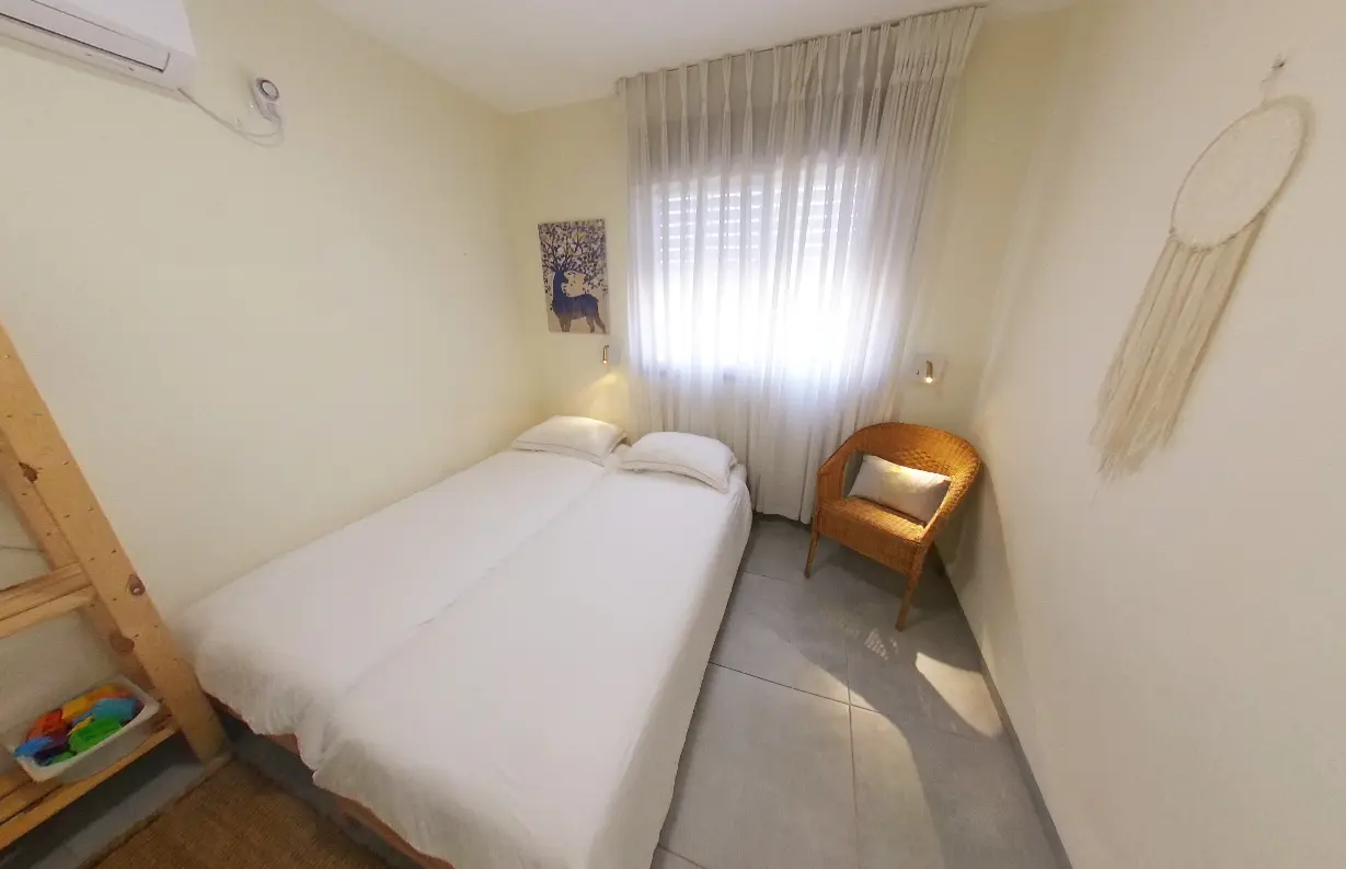 עד 10 אורחים 80 מטרחדר 2: 3 מיטות יחיד, 2 לולים לתינוק (סך 5 אורחים)